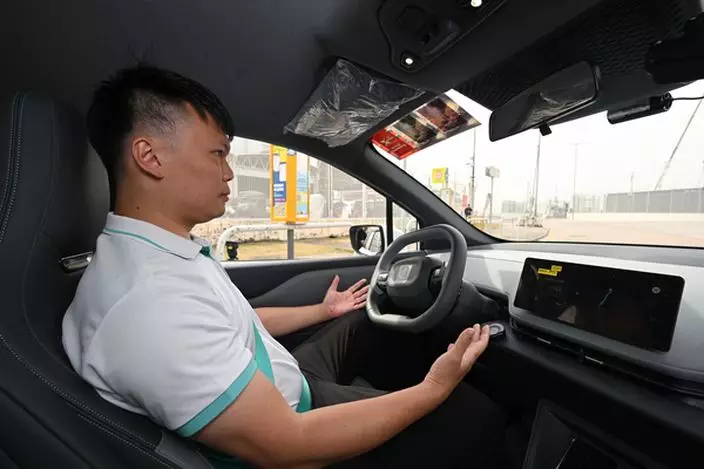 測試期間,司機雙手離開軚盤,但在必要時會接管車輛。政府新聞處圖片