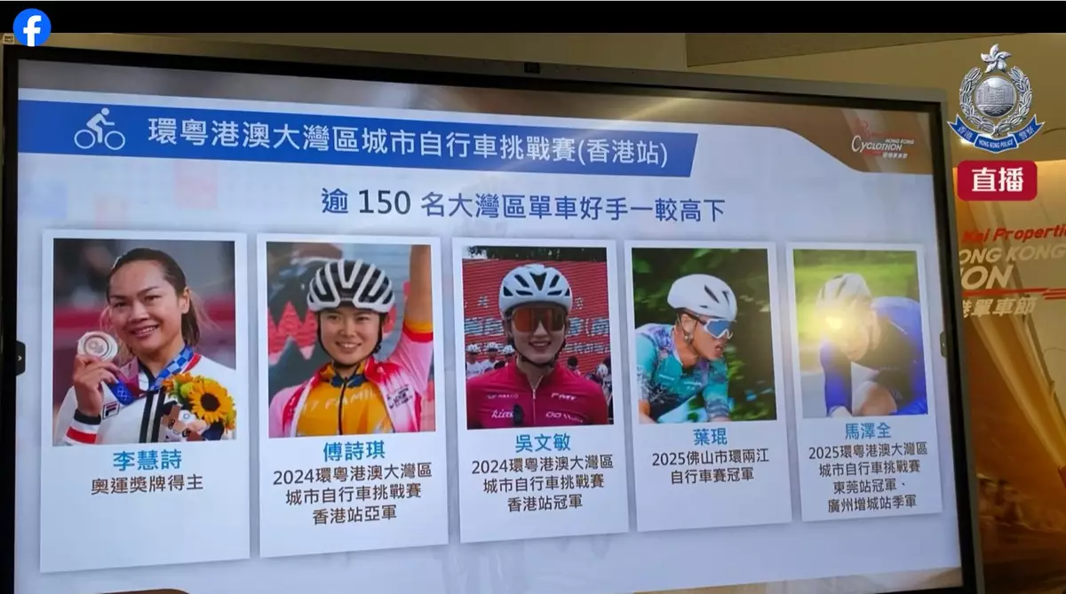 香港單車節11月30日舉行,包括李慧詩在內多位單車運動員將會出席。香港警察FB影片截圖