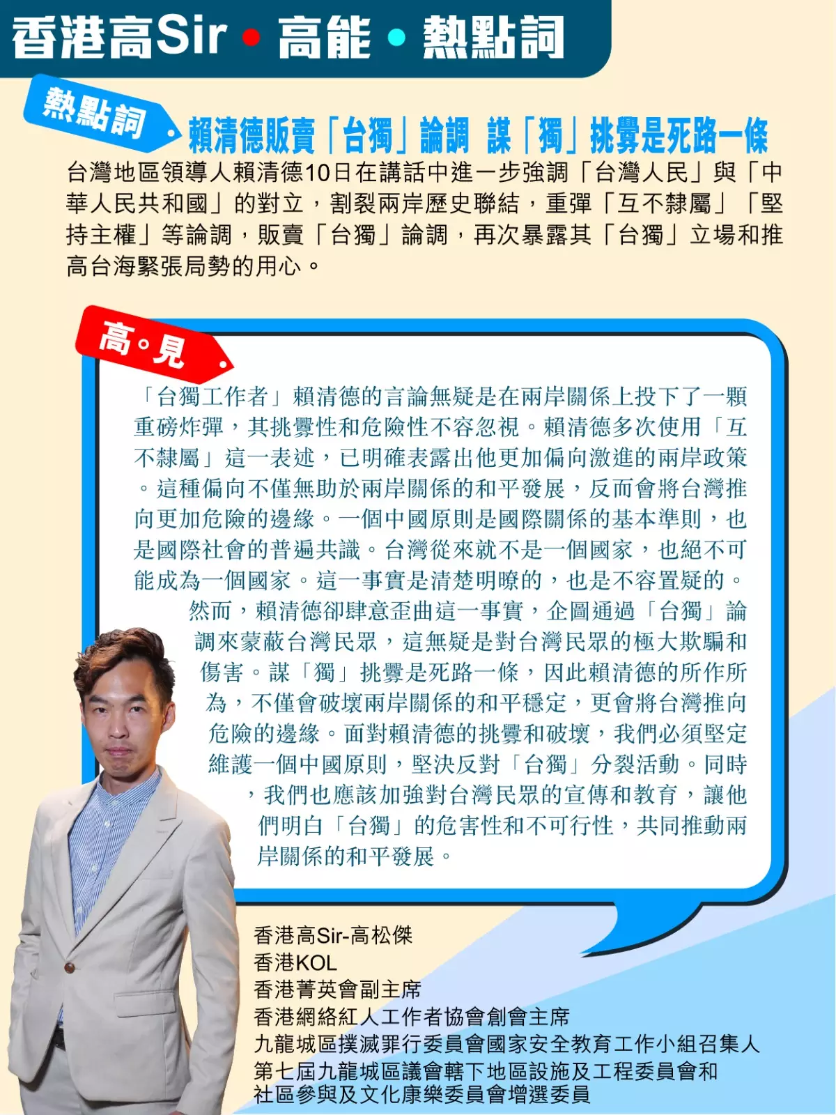 高Sir:台灣當局自詡為自由民主的守護者,卻為何要對一款國產3A遊戲大作《黑神話:悟空》進行審查?這款遊戲,以中華文化為內核,是中華文化的瑰寶,是兩岸同胞共同的驕傲。你們卻遲遲未讓它在台灣地區的遊戲平台上架,這是何等的荒謬!《黑神話:悟空》的火爆,不僅讓大中華地區玩家為之瘋狂,也讓老外們感慨不已。他們驚訝地發現,孫悟空這個深入人心的角色,竟然來自中國,而不是他們一直以為的日本。這款遊戲,不僅展示了中華文化的魅力,也打破了歐美對3A遊戲的長期壟斷。這是何等的榮耀!這是何等的自豪!民進黨當局,你們的荒謬行為何時才能停止?你們何時才能真正的以民眾的利益為重,以中華文化的傳承和發展為己任?何時才能真正的做到自由民主,讓兩岸的文化交流更加順暢,讓兩岸的民眾更加緊密地聯繫在一起?民進黨呀民進黨,請你們認真的反思自己的行為,不要再讓荒謬和無知繼續下去。