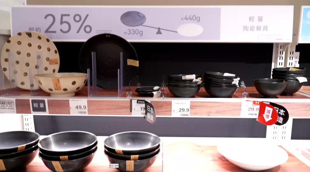 作為NITORI自主開發的「超輕量餐具」系列,碗碟重量較傳統瓷器輕25%至35%,厚度不變,更便於搬運與收納,這也是NITORI最感自豪的產品,亦只有NITORI才能買到。大森唯史指,該系列旨在讓消費者使用時更輕便,「對於做家務的人來講,一下子拿這麼多碗碟,重量越輕就越輕鬆。」