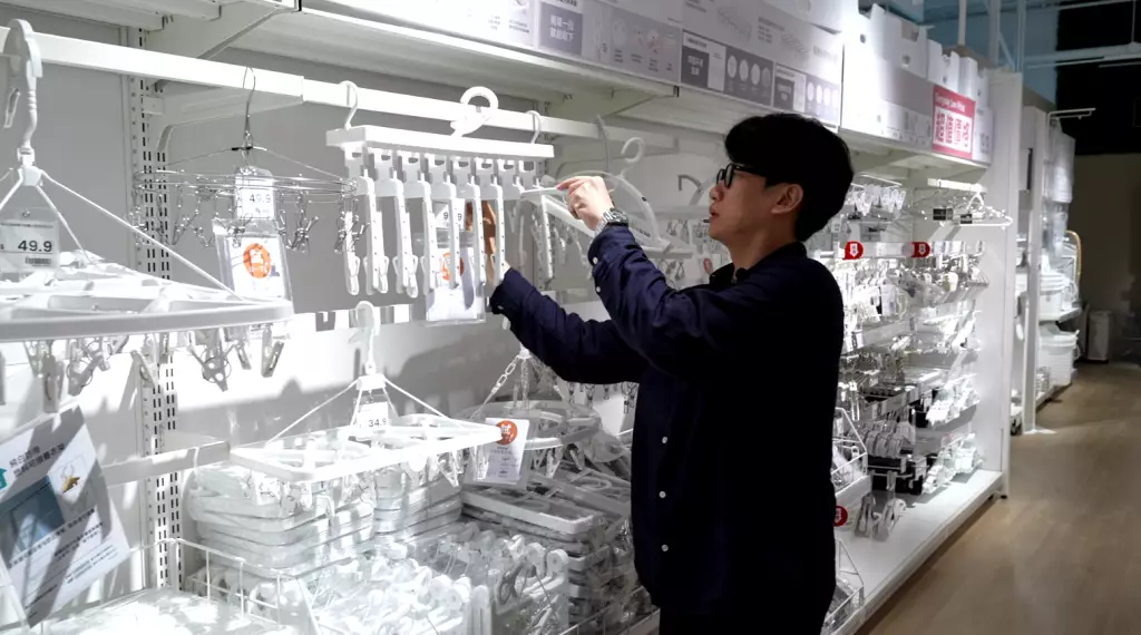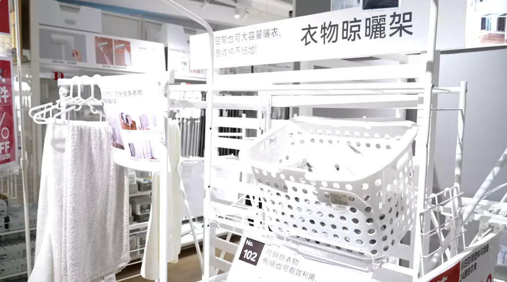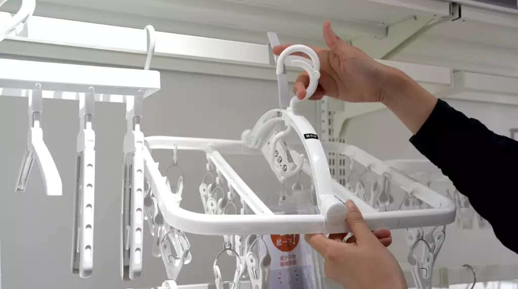 針對香港狹小的居住環境,NITORI推出了一款可承重12公斤的衣物晾曬架,可以放置於洗衣機上,節省空間;而其餘衣架款式各有特色,有一按即收設計,亦可以掛在門邊,成為小戶型家庭的救星。大森唯史表示,這些設計均是在銷售過程中收集客人意見進行開發,貼近客人生活需要。