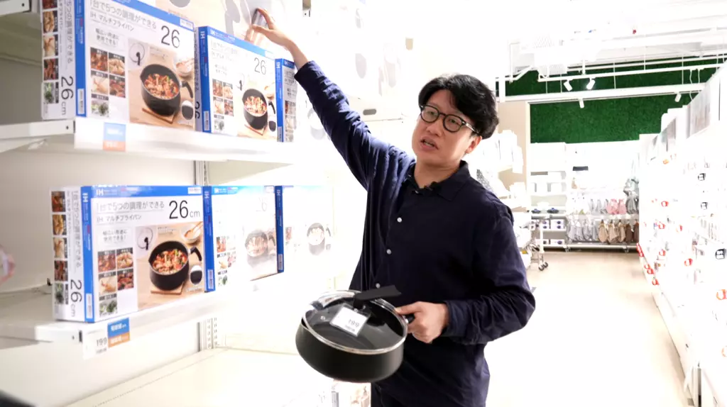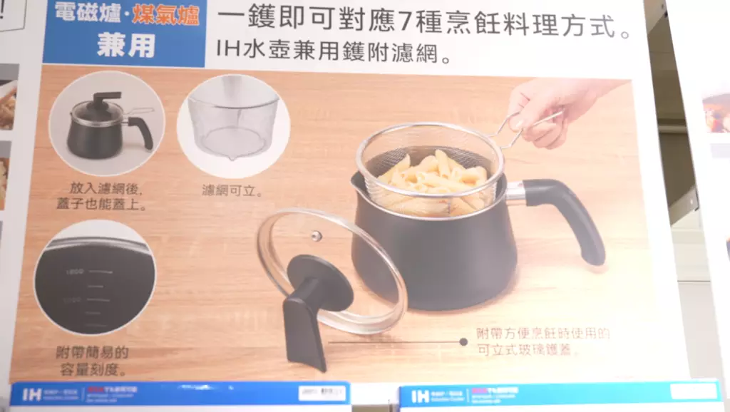 NITORI的多功能IH水壺兼用鑊是銷售冠軍,記者來到現場時發現已經被搶購一空。據大森唯史介紹,這款產品的獨特之處在於集炒、炸、煮等多種烹飪功能於一體,附帶濾網設計,兼容電磁爐和明火使用,輕便的設計特別受歡迎,僅灣仔門店每周就能賣出20個左右。
