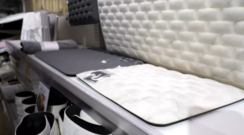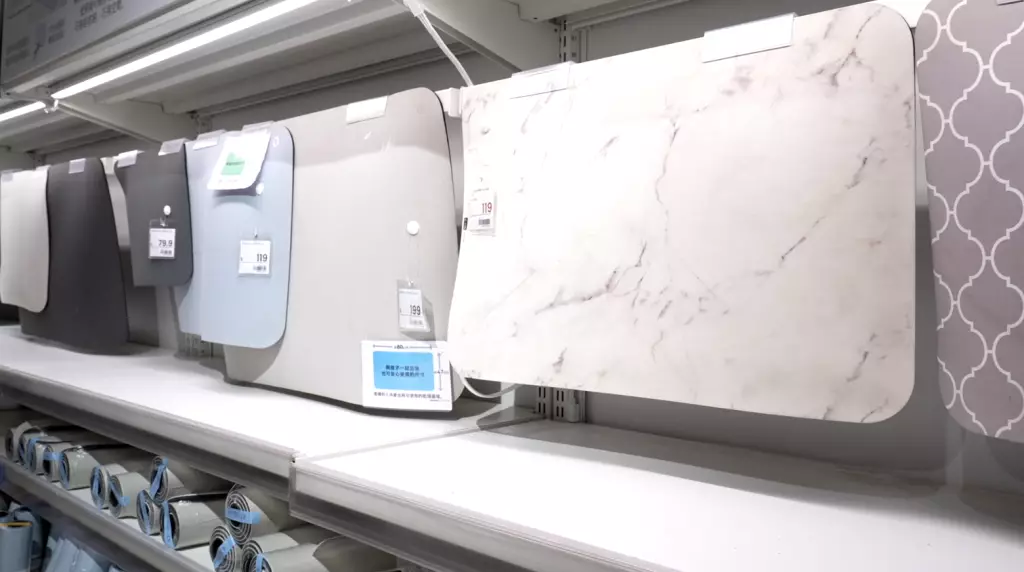 另一款引起記者關注的產品是防水地墊。其中一款從原本的硬質矽膠改為柔軟材質,方便使用完晾曬;另一款防滑矽藻土吸水軟墊最初在日本熱銷,今年才引進香港市場,其採用大理石紋理設計,有一定厚度,吸水量提升3倍,不僅實用更增添居家美感。