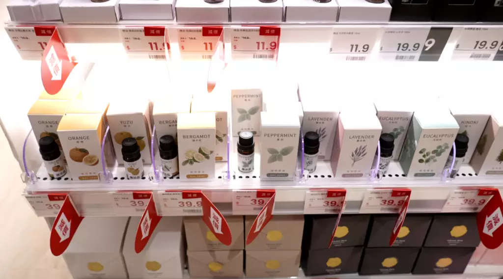 香薰原本是在店鋪較偏僻的位置,如今通過重新佈局將其移到門口當眼處,其中香薰機銷量最佳,每間店鋪每周可賣出約20個。