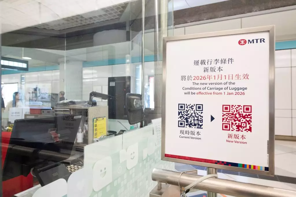 乘客可在港鐵站掃描二維碼查閲「運載行李條件」新版本。