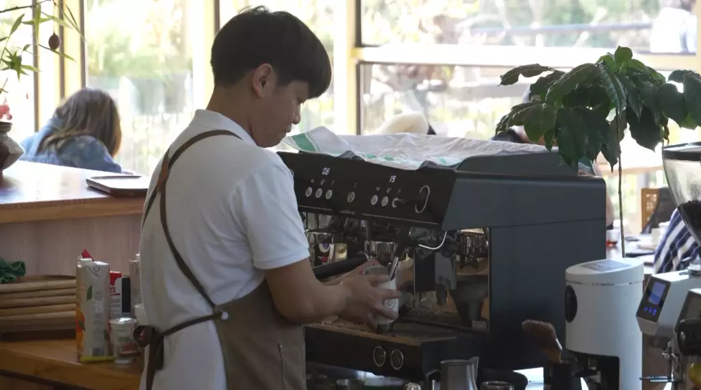有遊客分享了他對這區域輕鬆氛圍的熱愛。 「這裡的空氣真好,整體氛圍非常放鬆。我們還能學到很多關於咖啡的知識,孩子們尤其喜歡這裡。」
