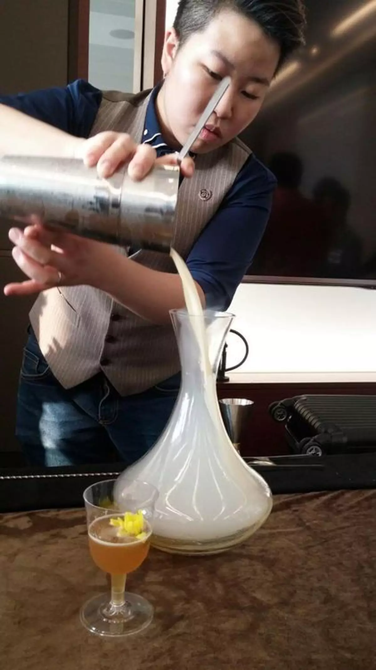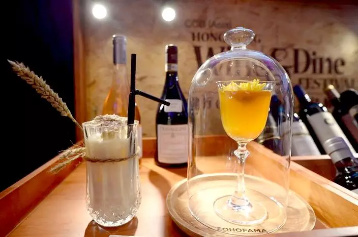 另一酒商就推出菊花酒「花落誰家」,以洋甘菊、胎菊和杭菊浸泡在白酒5個月,取其菊花香,加入本地有機永和蜂蜜和檸檬汁,飲時再以蘋果木煙薰,入口菊香四溢又帶酸甜。以上雞尾酒要3張品酒券試飲。