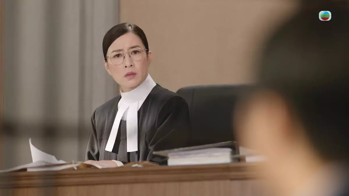 《康業信貸快遞物業貸款呈獻:正義女神》昨晚(4月3日)第五集審理了「盜竊案」、「少女殺嬰案」及準備開審「碰瓷案」,當中由言惠知(佘詩曼飾)審理的「盜竊罪」,涉案人物是當日擊斃蘇麗慈(文頌嫻飾)的警員何偉迪(黃庭鋒飾)。偉迪雖承認控罪,但當言官得悉偉迪是因準備買麵包時,以為自己看見蘇麗慈,失神之下才忘記付款,最終言官惠知宣判偉迪罪名不成立,令偉迪感激不已,更因而埋下了二人日後關係的伏線……