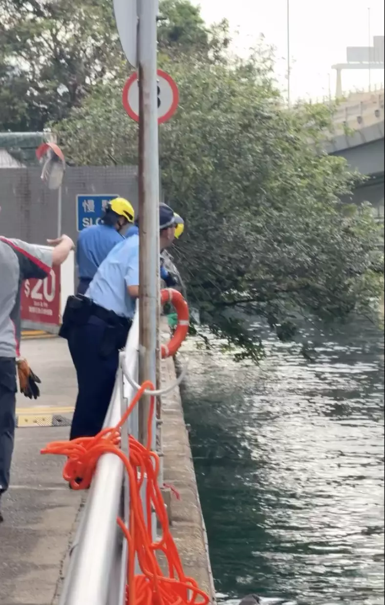 為怕野豬力竭遇溺,消防員多次於健康東街北角消防局對開位置,向水面投下救生圈,惟野豬一直掙扎。threads影片截圖