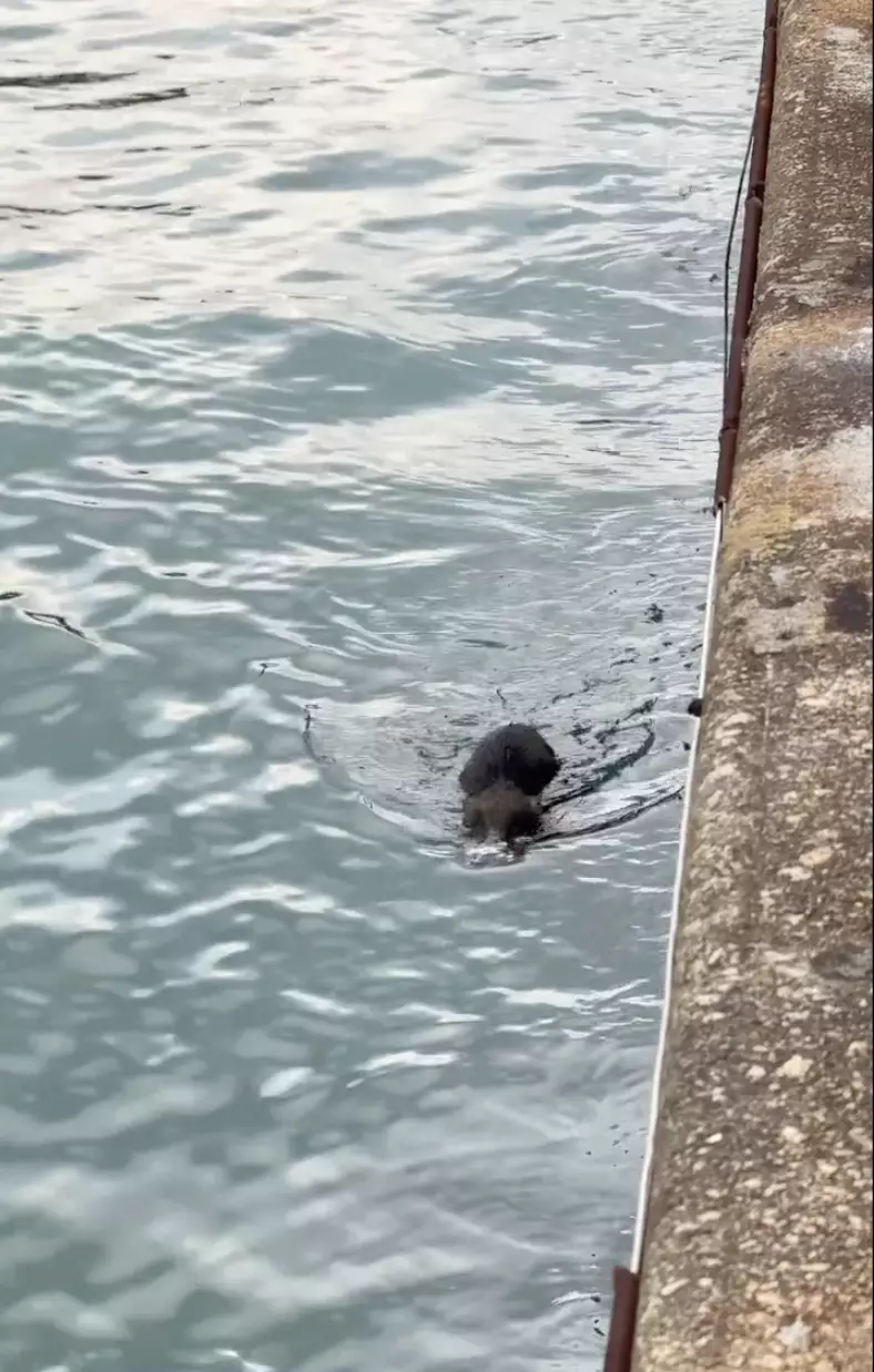 北角海傍懷疑有野豬墮海受傷。threads影片截圖