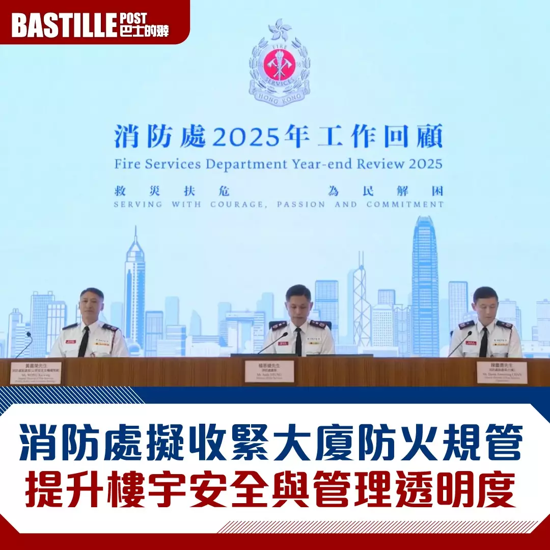楊恩健說,消防處在宏福苑大火後,進行全港大維修樓宇的消防設備和裝置的巡查,已巡查正進行大維修的461幢大廈,發現當中有22幢大廈的火警鐘有不同程度的損壞,處方向該些大廈發出消除火警危險通知書,當中10幢大廈已經維修好,另外12幢大廈仍在維修有關消防鐘,處方同時有進行檢控行動。