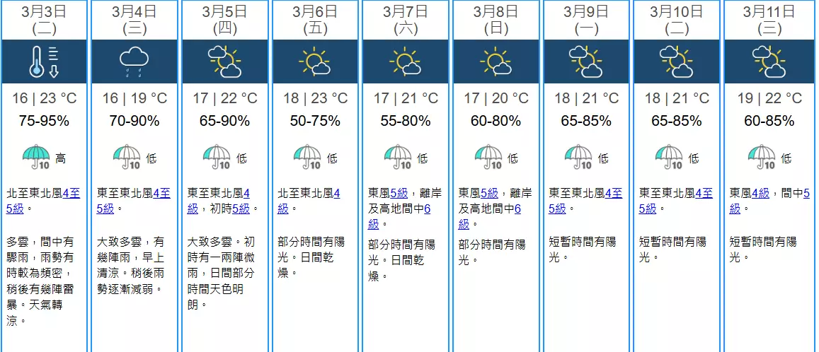 天文台在上午10時20分改發3號強風信號,並會於今日日間大部分時間維持。