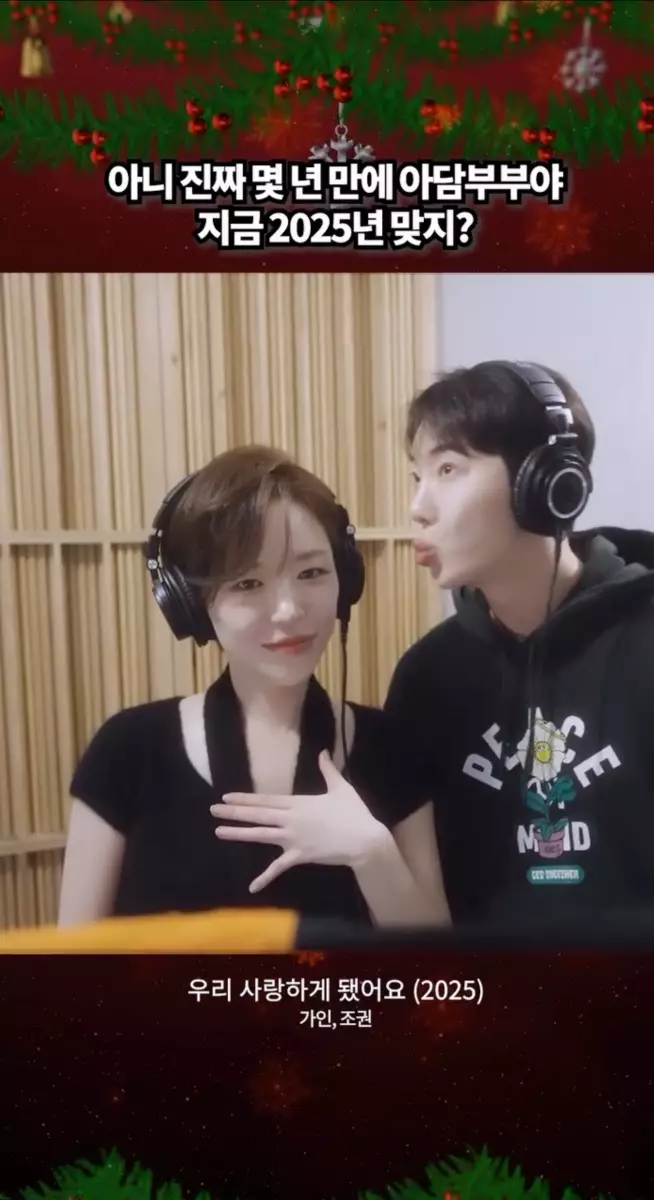 這首《我們相愛了》原本是2009-2010年兩人參加MBC《我們結婚了》第二季時的假想夫妻主題曲,當時不僅橫掃各大音源榜,還曾在《音樂中心》拿下冠軍,成為當年最紅的「國民CP神曲」。節目結束後,亞當夫婦雖各自發展,卻從未真正斷聯,近年更是頻頻「放閃」,現身支持對方的演唱會並出席生日派對等,每次合體照一出都令粉絲瘋狂點讚。如今睽違15年,兩人終於重返錄音室,以成熟嗓音重新詮釋這首經典情歌,更選在聖誕月作為給粉絲的驚喜禮物,完整音源與MV預計12月內正式發行。