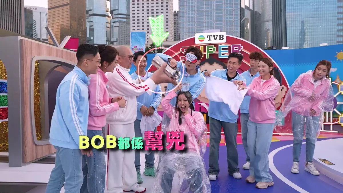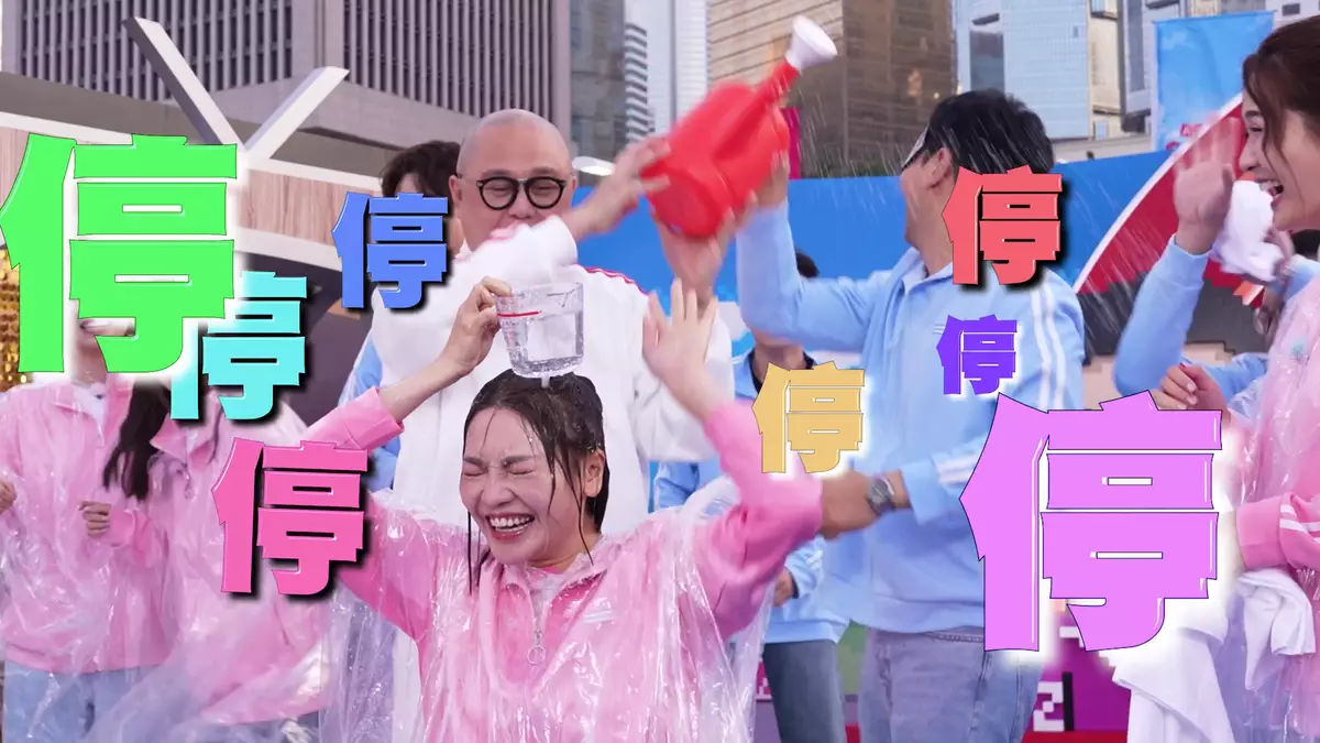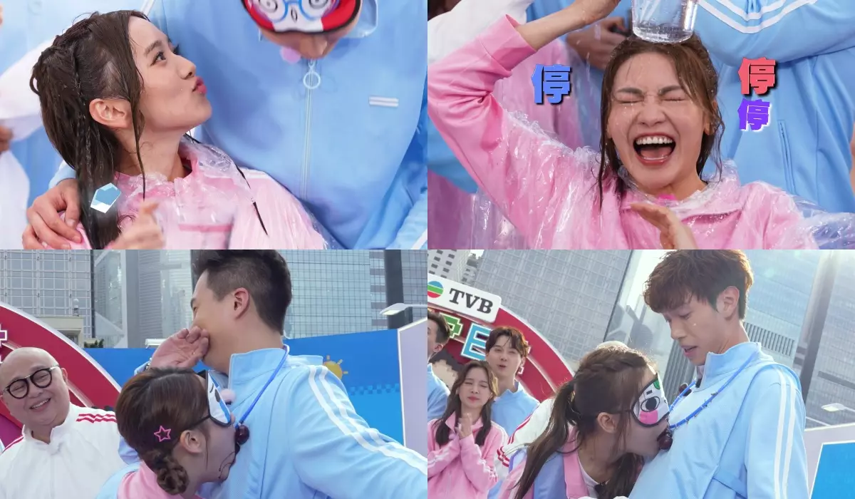 Matthew淋到Carman變「落湯雞」,而明顯Carman係盡量忍住道氣。