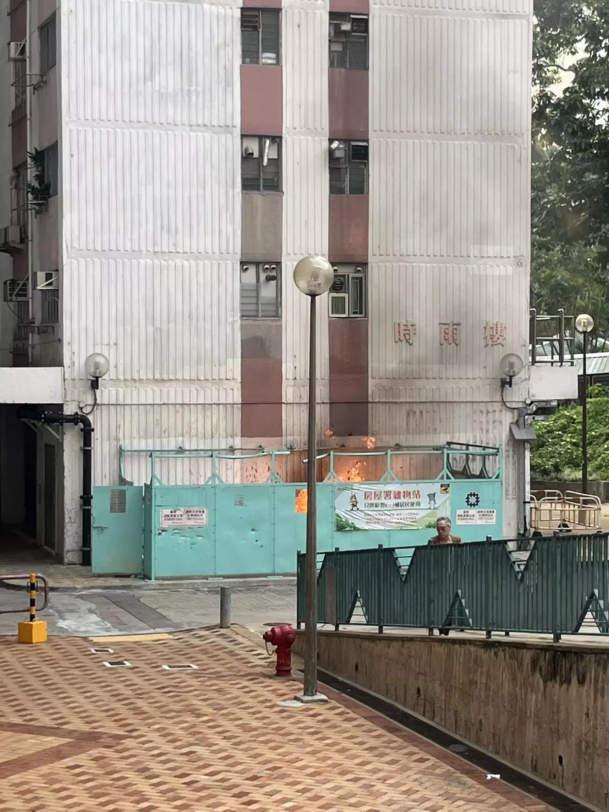 黃大仙彩雲(一)邨時雨樓樓下一個垃圾收集站下午發生火警,現場一度火光熊熊並冒出大量濃煙。