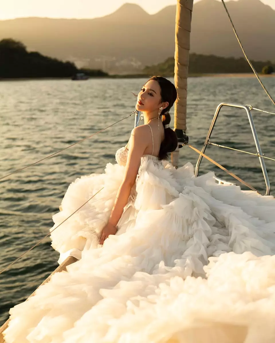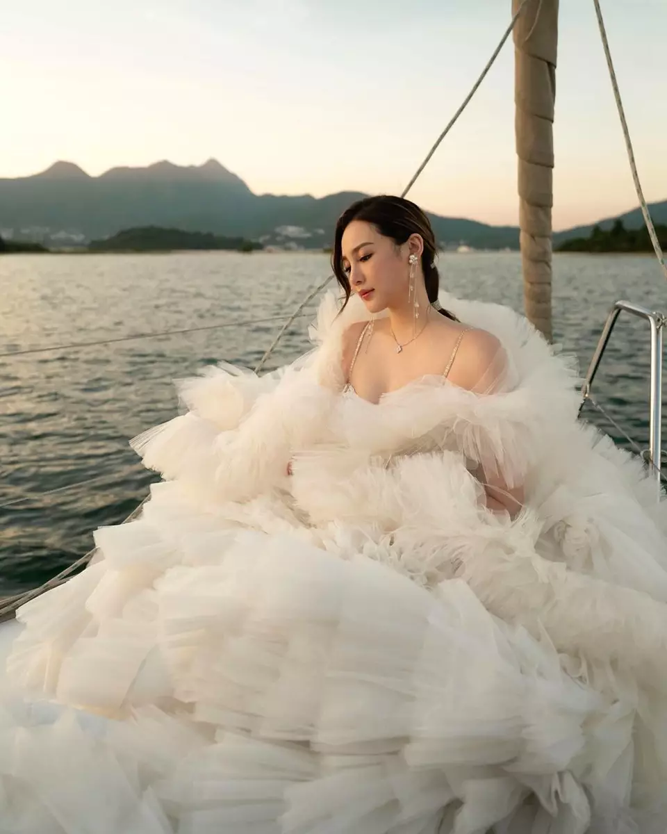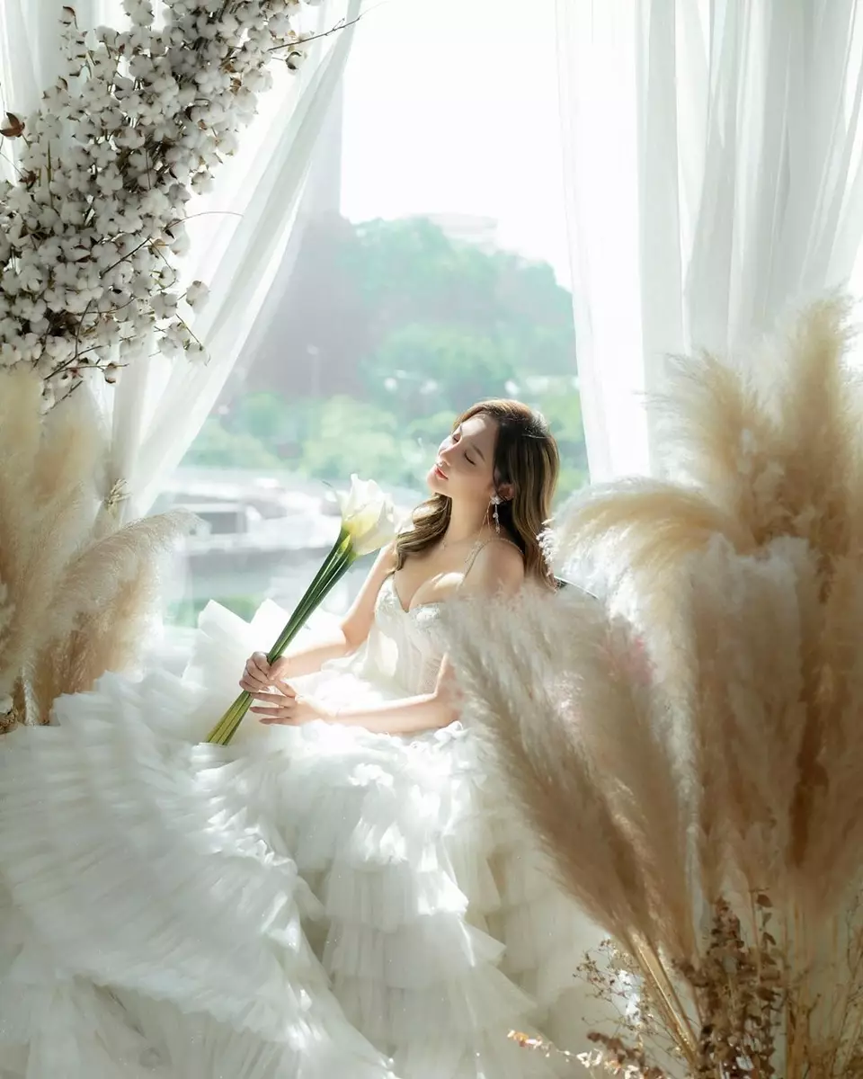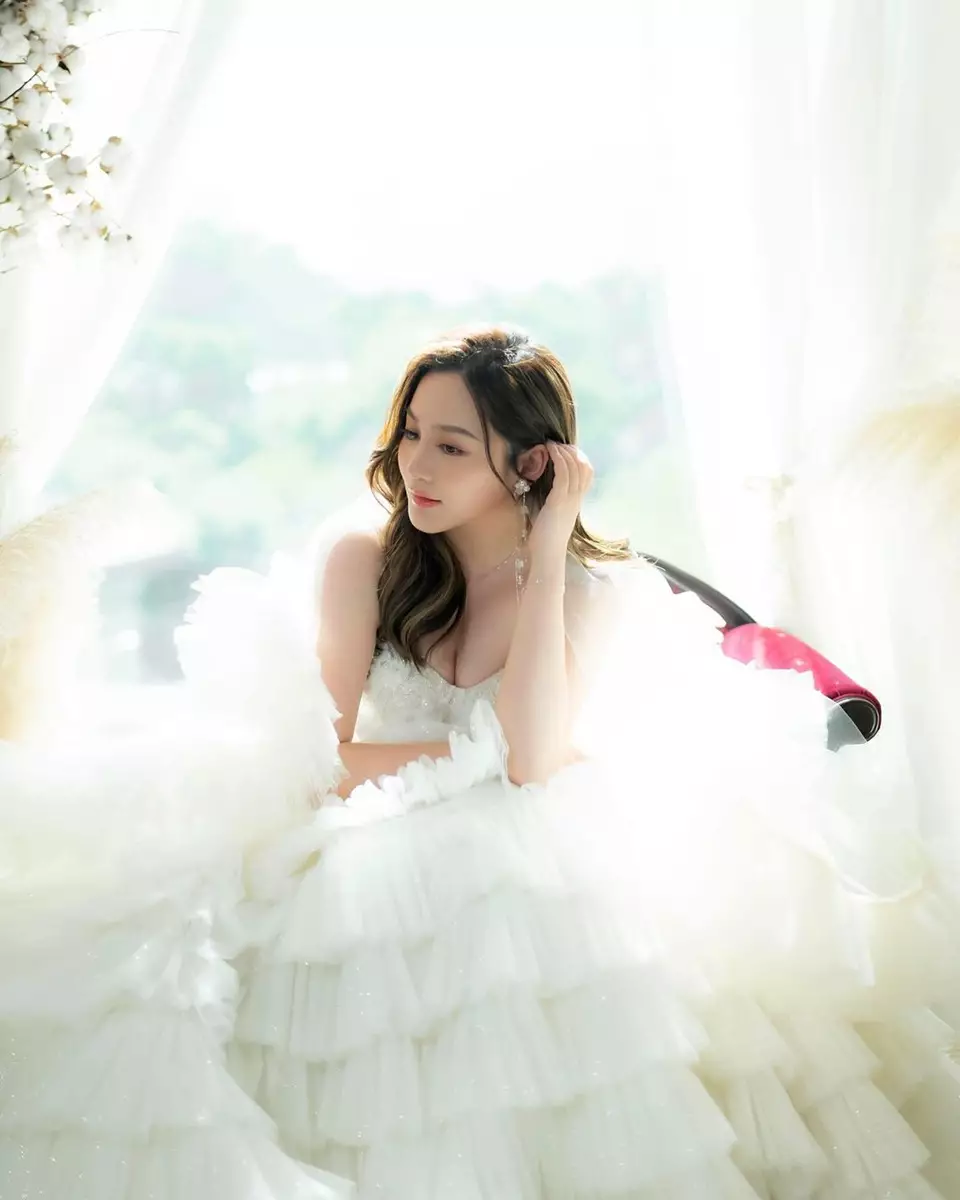 Ashina近日分享多張性感婚紗照,對著鏡頭擺出多個不同pose,露出香肩騷超長事業線,莫非向富二代男友作出暗示?郭奕芯發文:「為青春留下一個美好的回憶」,她還特意澄清:「#未結婚架」。