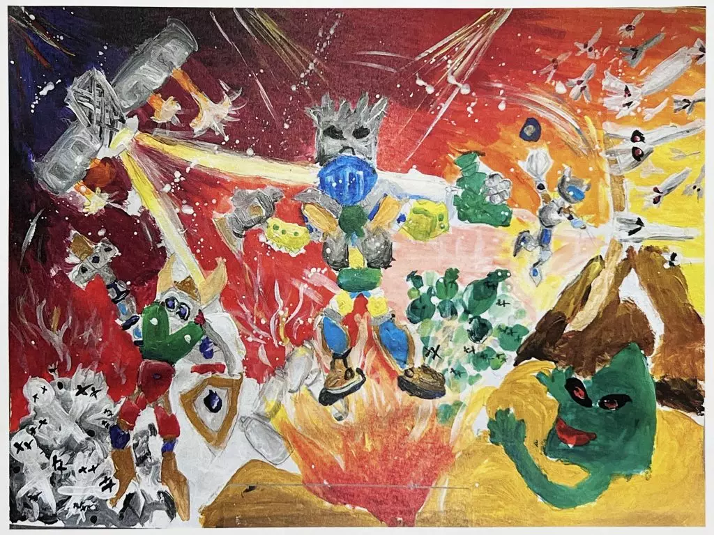 至於小學及幼兒園組別的「創意學生獎勵計劃」得獎作品也別出心裁。有幼稚園學生以混合媒介 創作出一幅生動的粵劇花旦藝術作品,展現了他們對傳統文化的熱愛與理解。亦有小學生的作品 以細膩的筆觸捕捉了狂歡節的熱鬧與歡愉,展現出他們的觀察力和表現力。