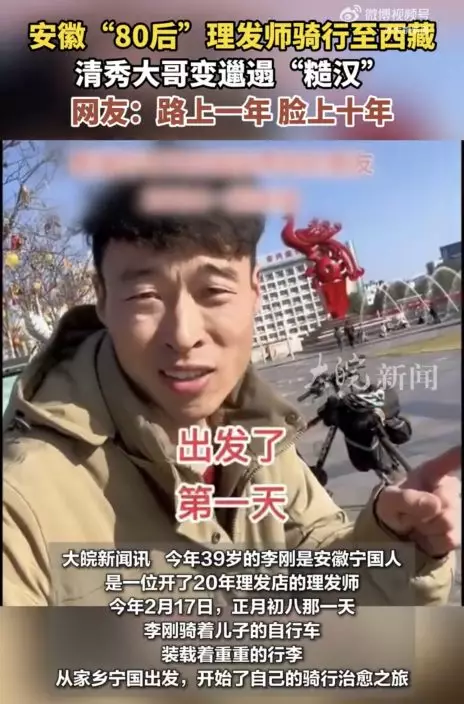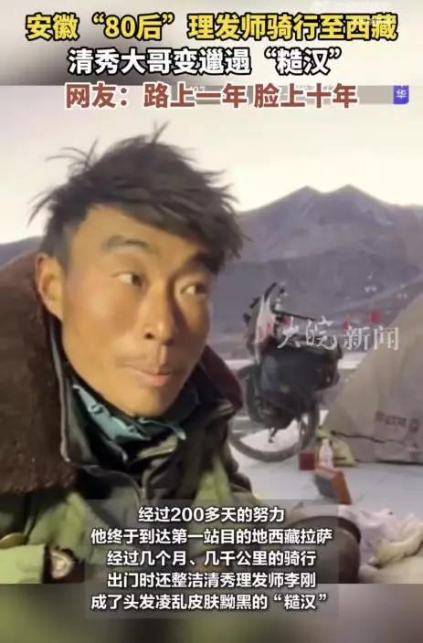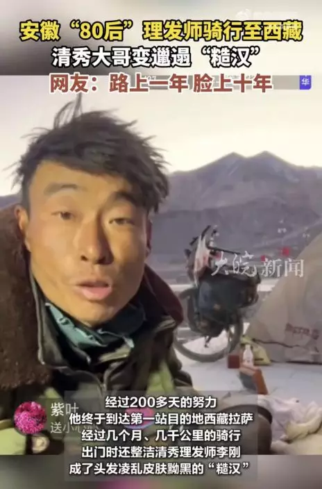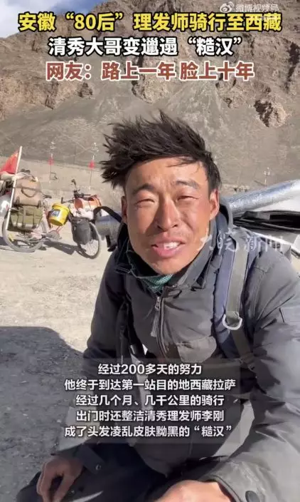 安徽39歲理髮師為療癒心情從家鄉出發騎行,逾200天騎行數千公里前往西藏變驚變「蒼老糙漢」 ,網笑:路上1年臉上10年。