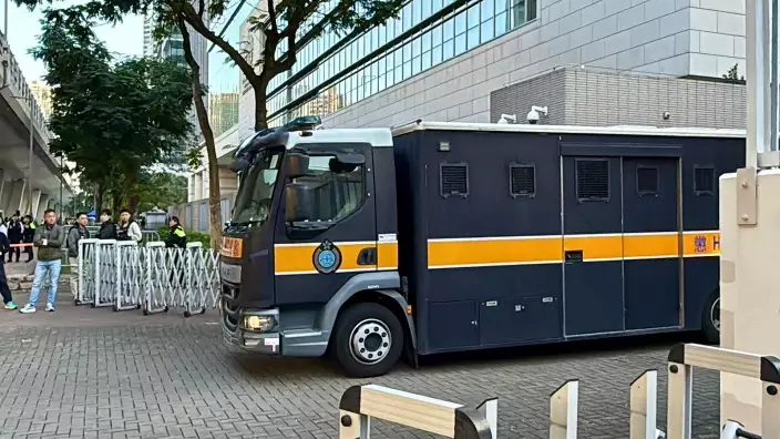 囚車下午離開法院。(巴士的報記者攝)