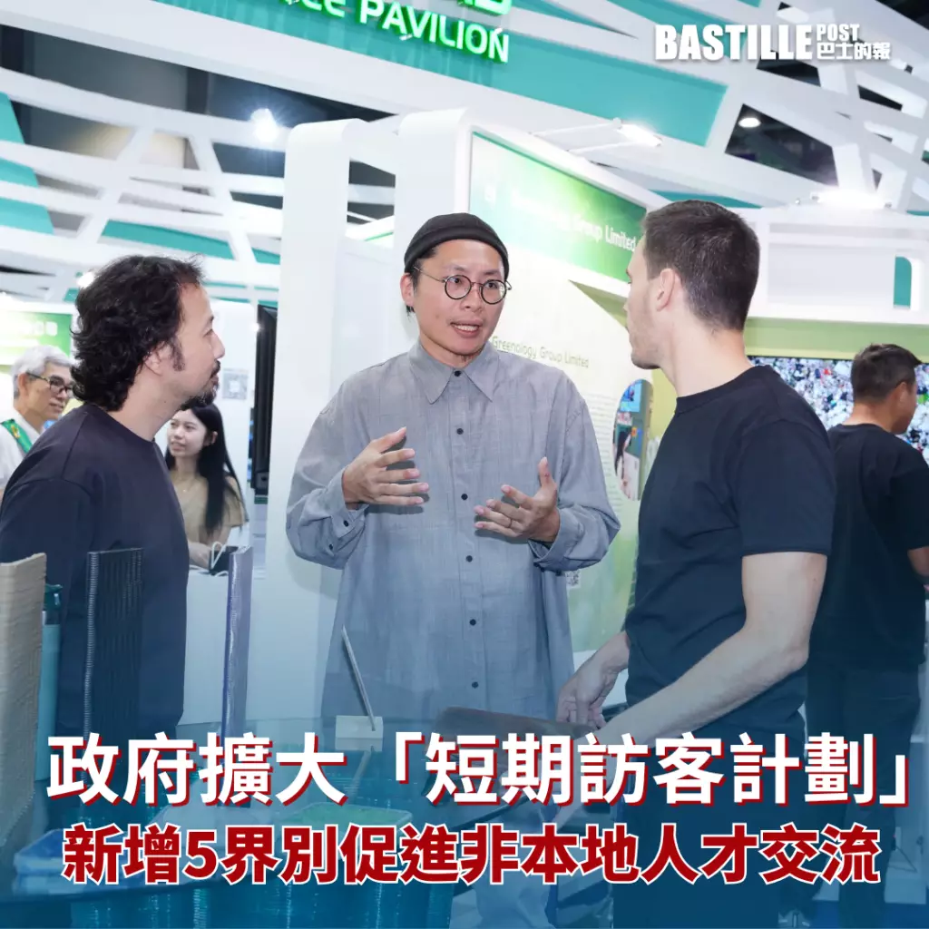 政府將由11月1日起擴展「為來港參與指定界別短期活動的訪客提供入境便利計劃」(短期訪客計劃),讓更多非本地人才以訪客身分來港參與指定短期活動而無須申請工作簽證/進入許可。經檢視後,在現行12個指定界別外,短期訪客計劃將增設5個新界別,並新增更多認可機構及指定短期活動。