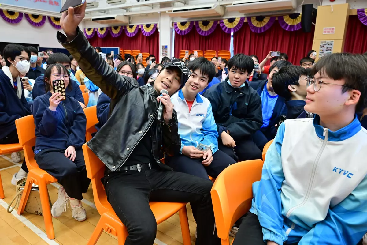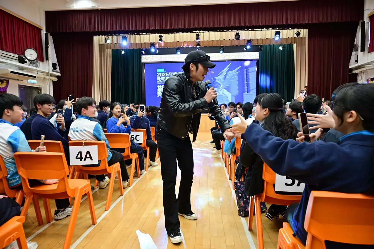他更走到台下與學生握手及自拍,令同學十分雀躍,引起全場哄動。