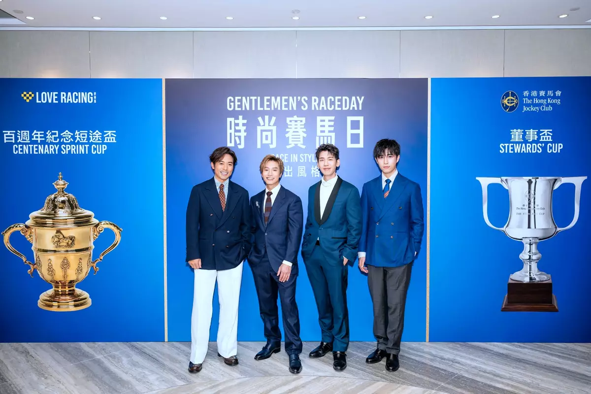 多位樂壇型男陳柏宇(Jason Chan)、林奕匡(Phil Lam)、林德信(Alex Lam)及吳啟洋(Phoebus Ng)亦現身馬場,配合「時尚賽馬日」的主題,以藍色元素襯托的紳士造型亮相,為場內增添時尚氣息。幾位歌手的歌唱實力毋庸置疑,而他們的魅力更由音樂舞台延伸至沙田馬場,透過各具特色的穿搭風格,展現不同面向的紳士風範,成為活動中另一道亮點,大受歡迎。他們在馬場內觀賞緊張刺激的賽事,親身感受現場熾熱氣氛,共同見證「時尚賽馬日」的精彩時刻。