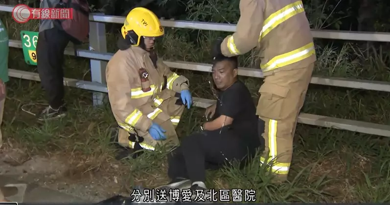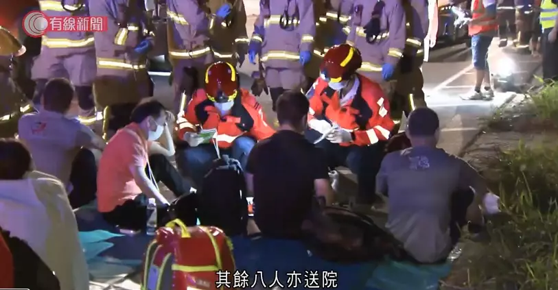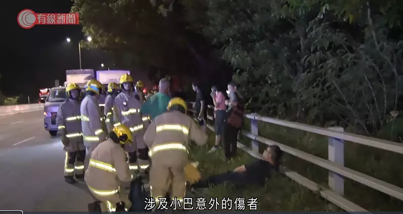 涉及小巴相撞意外的傷者正等候救援人員初步包紮。有線新聞影片截圖