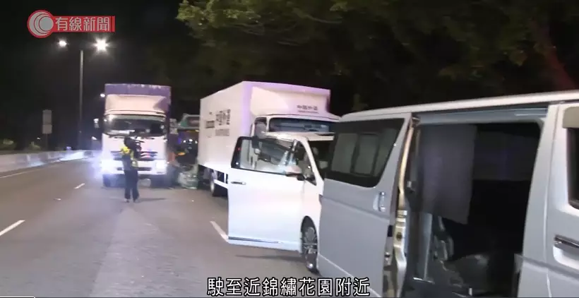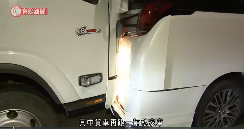 小巴撞向前方停下的中型貨車,並牽連另外3車。有線新聞影片截圖