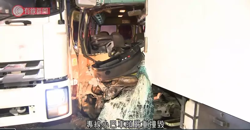 專線小巴車頭損毁嚴重。有線新聞影片截圖