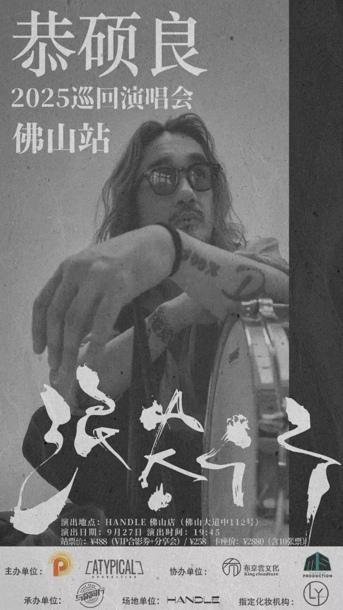 亞洲殿堂級鼓手兼唱作全能型才子恭碩良(Jun)將於9月27日晚上7時45分,舉行「浪客行巡迴演唱會」佛山站,表演場地為HANDLE,這也是繼2010年的「Jun On The Moon Live 2010演唱會」後,Jun相隔15年再度以個人身份踏上舞台和大家見面,粉絲福利包括和Jun合照及參加分享會。「浪客行」中的「浪客」是不斷浪跡天涯鍛鍊自己,追求劍道的最高境界;「彳亍」(chì chù) 的原意是指緩慢地行走,或走走停停。 這個詞由左腳的「彳」和右腳「亍」組成,意象上表示小步慢行的動作,「浪客彳亍」 就是恭碩良多年來一步一步緩慢踏實地追求音樂真諦之路。