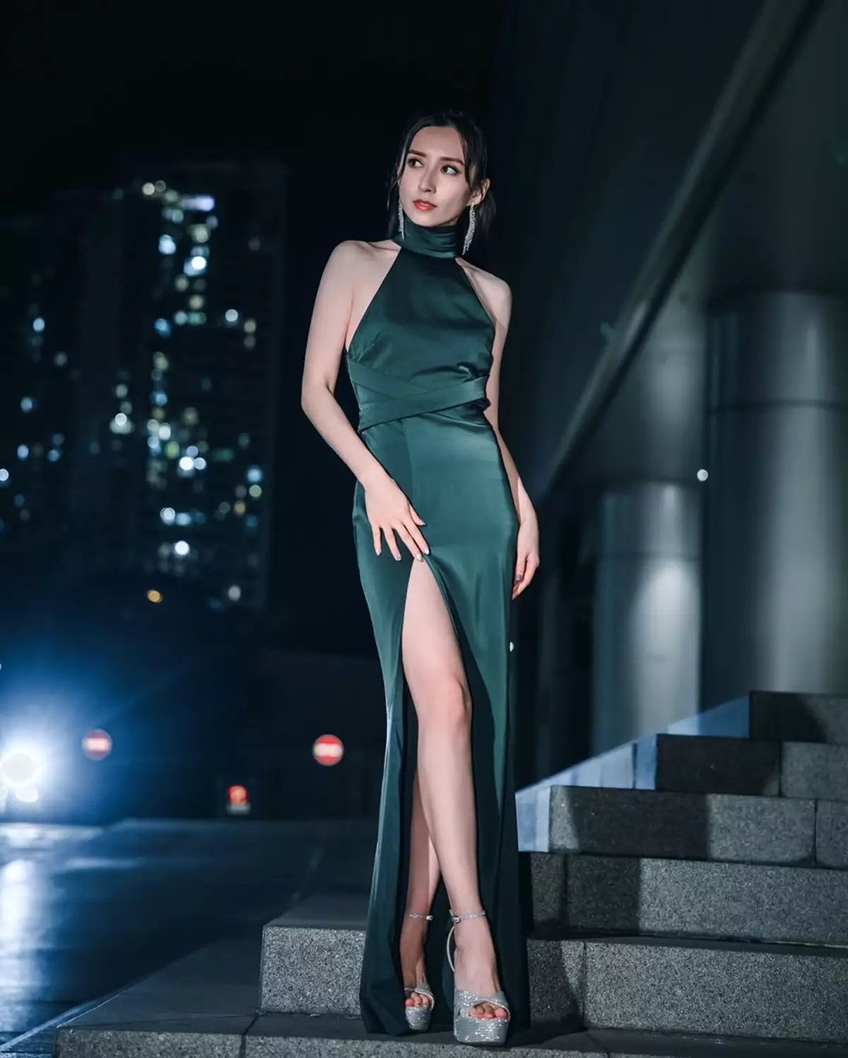 嘉欣留言:「2024 收穫滿滿 感恩 知足 2025 我要繼續發光發亮 我們互相陪伴 互相支持 一起勇敢的 去追尋自己所想的 願我也能為身邊愛錫我的人 帶來更大的力量 分享更多的愛?」相中所見,身穿緞面質感墨綠色露肩高衩晚裝的她,相當性感優雅,更倚靠於台階扶手做出各種pose,在燈光襯托下顯得更加迷人。