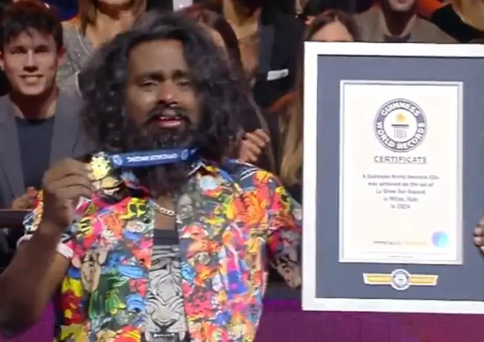 據《健力士世界紀錄》,這個難以置信的挑戰,由意大利電視節目 Lo Show Dei Record 直播。在數百名現場觀眾見證下,來自印度的特技演員帕尼凱拉 ( Kranthi Kumar Panikera ) 表演他其中一項絕技「舌頭神功」。