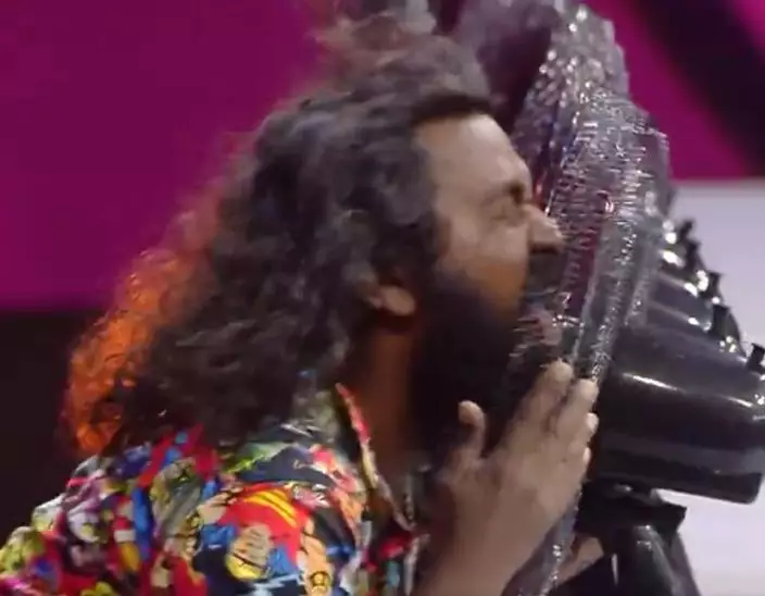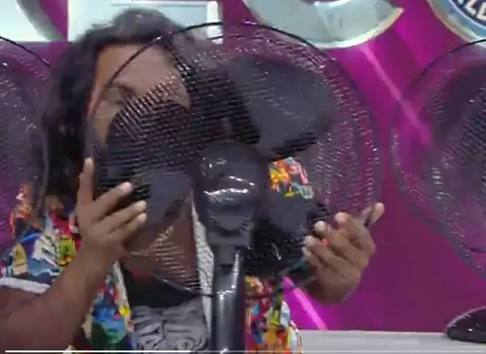 危險行為切勿模仿!印度一名特技演員的舌頭真利害,可以在一分鐘內擋住了 57 把電風扇繼續運行。