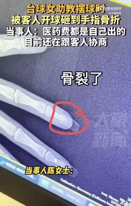 客人開球擊中女子無名指致骨頭裂開
