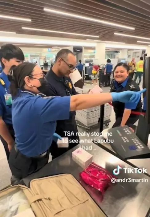 綜合外媒報導,美國一名男子「@andr3martin」日前與友人在三藩市(San Francisco)機場過安檢準備離境時,突然被機場保安人員攔截。不過原因並非他和友人身上帶有任何違禁品,而是因為他攜帶的Labubu盲盒惹來保安人員好奇。男子表示:「美國運輸安全管理局(Transportation Security Administration,TSA)的執法人員把我攔下來,只為了看我拿到哪一隻Labubu」。
