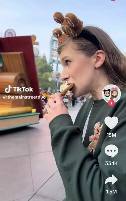 @themainstreetduo COOKIE LOOK AWAY!!! ??? We’ve talked about recreating this moment for years and we finally did it! The gingerbread cookie was so delicious, we only felt a little bit guilty #disneyland #disney #disneyparks #christmasfantasyparade #achristmasfantasyparade #gingerbread ♬ original sound - TheMainStreetDuo