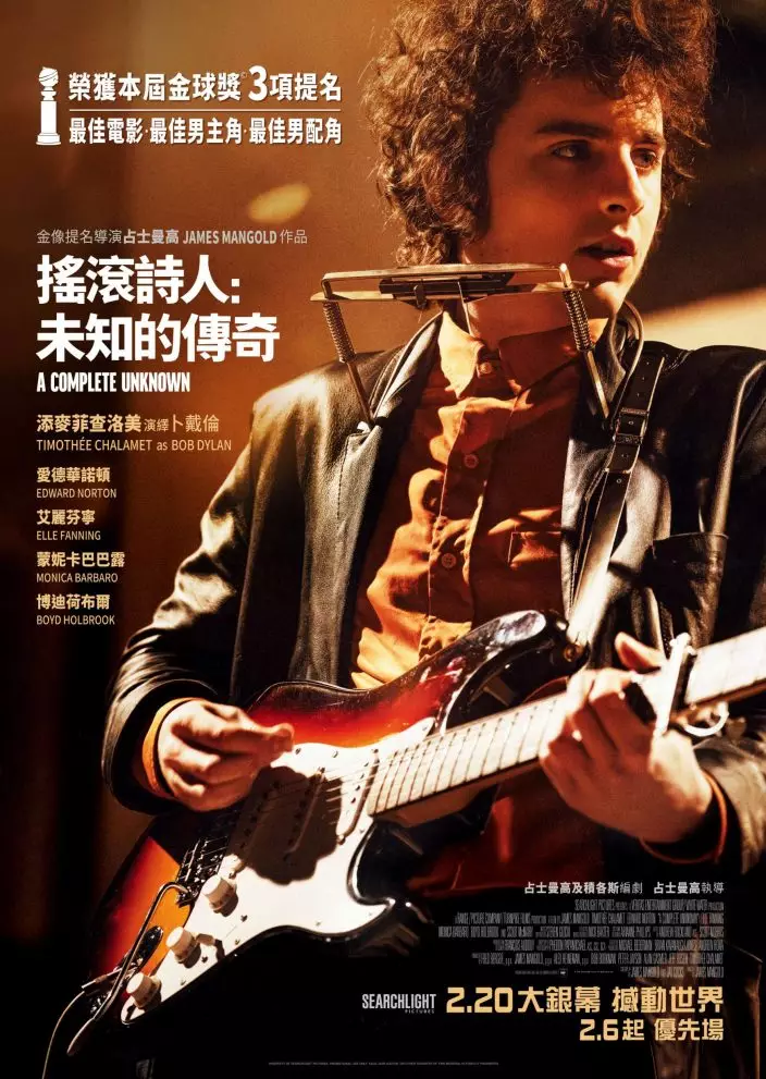 《搖滾詩人:未知的傳奇》在美國上映以來好評不絕,影片已獲美國電影學會和美國國家影評委員會選為 2024 年十大電影之一,並入圍第 82 屆金球獎最佳劇情片,添麥菲和愛德華諾頓也分別入圍金球獎最佳男主角和最佳男配角。添麥菲亦已獲得美國多個影評人協會最佳男主角,有望問鼎金像影帝之作!