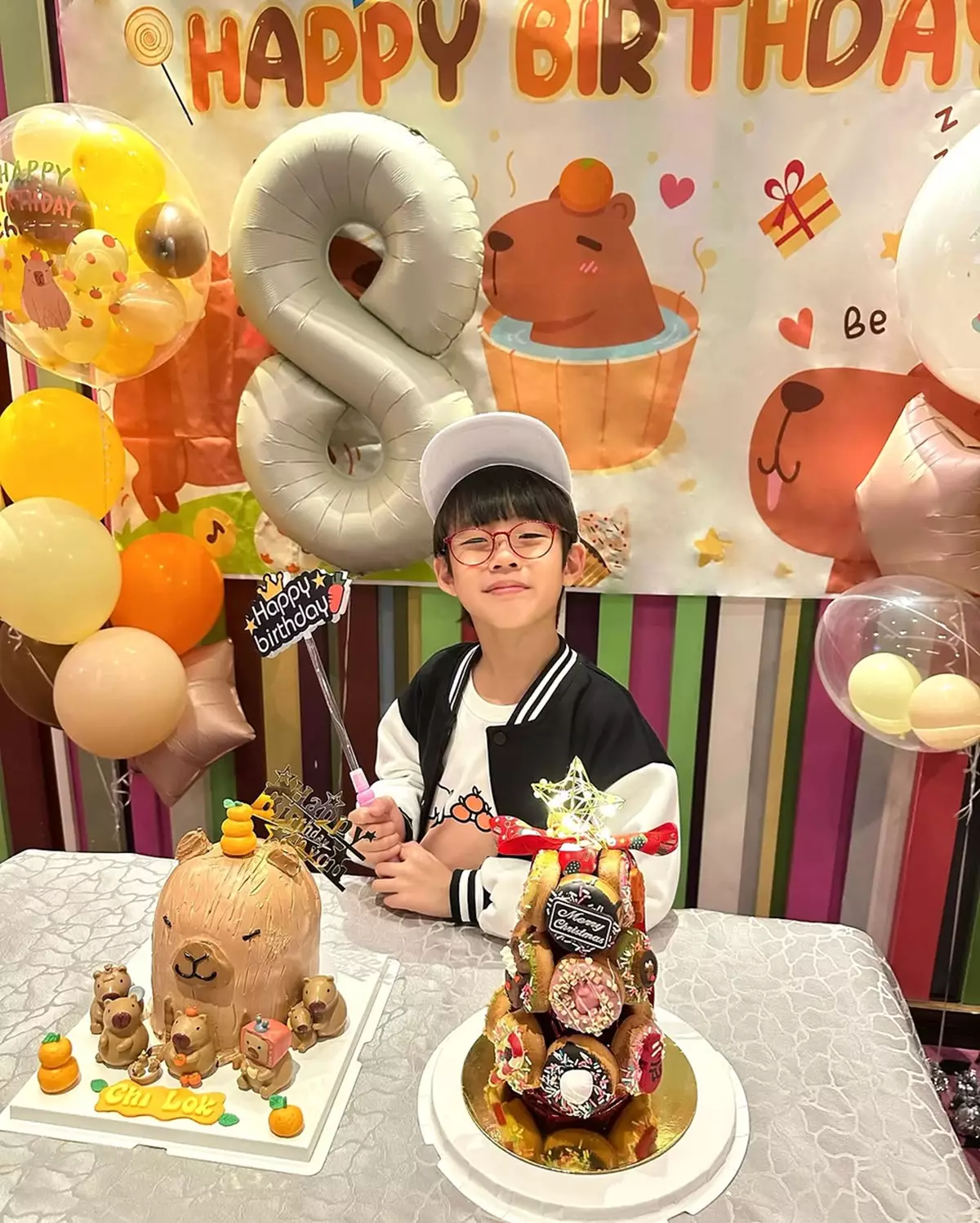 敏之與老公為囝囝舉辦生日會,相當用心佈置成小型的水豚主題,並邀請了子樂的好朋友一起來玩,敏之留言:「今年你的八歲生日,去日本滑雪慶祝 臨飛之前 媽媽幫你搞咗個簡單嘅生日會 希望滿足你所有願望 最緊要你開心健康!Happy Birthday My Dear Son」。