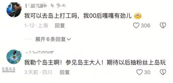 廣大網友也很好奇,自己能不能上島去玩,對此,張書卿回應指「按道理來講,如果我圍起來這塊地,有人進去屬於闖入私人領地。但是目前我們沒想圈起來,也沒想私用,網友想去玩就去。」