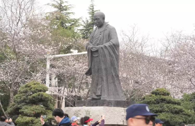 揚州鑑真路以櫻花大道聞名,路旁設有高大的鑑真和尚銅像。 巴士的報記者攝