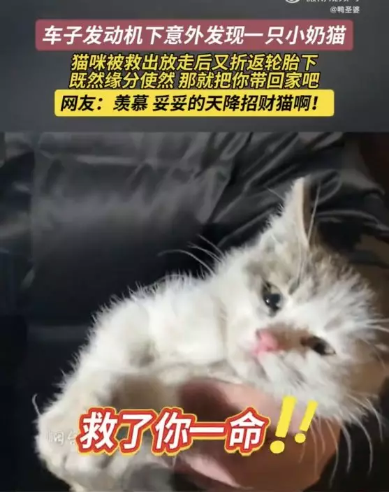 山東女車主在汽車引擎蓋救出流浪小貓後放生,後來因1原因回心轉意決定收編成為新手貓奴。