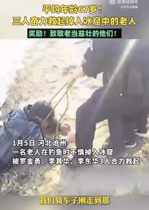 平均年齡67歲!河北3熱心市民騎車發現老翁釣魚失足跌冰窟合力將其拉上岸助脫險。