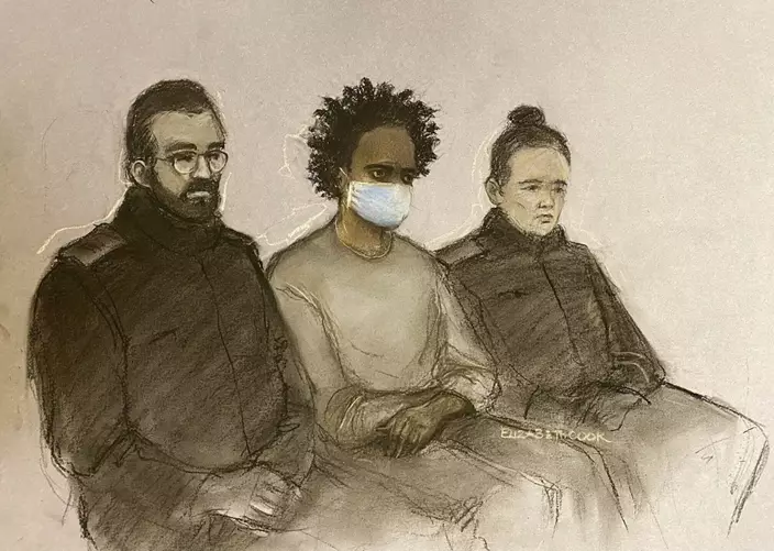 Axel Rudakubana出庭受審首日法庭素描。AP圖片