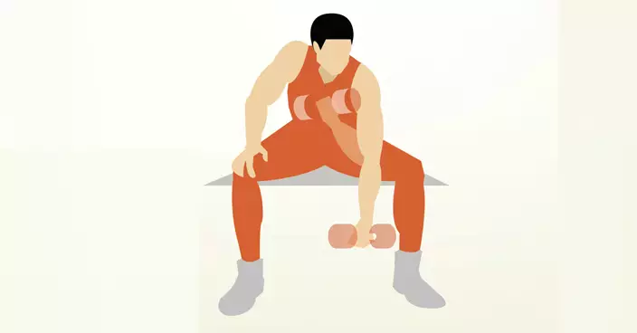 a. 把健身椅調節到45度角,坐在椅上,雙手持啞鈴垂下。