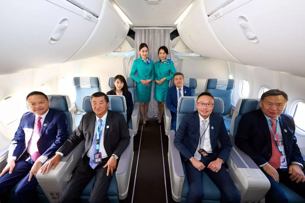 民航處助理處長(飛行標準)袁兆基、機場管理局企業發展執行總監何達、北銀金融租賃有限公司航空業務部副總經理吳碧菡,以及波音(中國)投資有限公司大中華區波音民機集團市場銷售全球副總裁高思翔出席儀式,並與大灣區航空主席黃楚標及大灣區航空副主席兼行政總裁侯偉一同主禮及登上客機參觀。