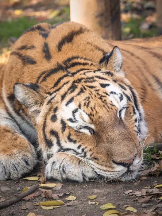 日本動物園老虎用雙爪枕著毛茸茸的虎頭趴在地上熟睡,睡顏可愛又療癒融化網友:終究是貓啊!