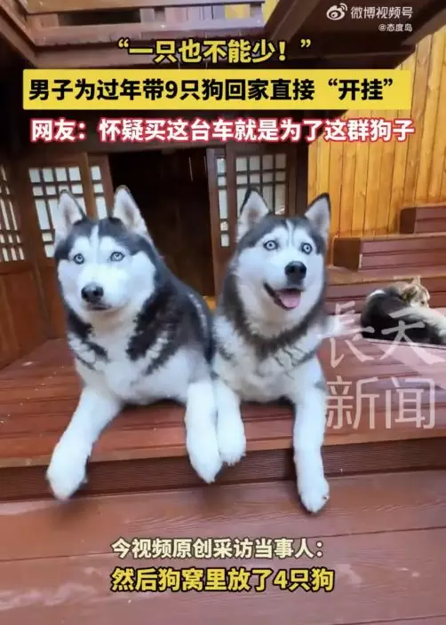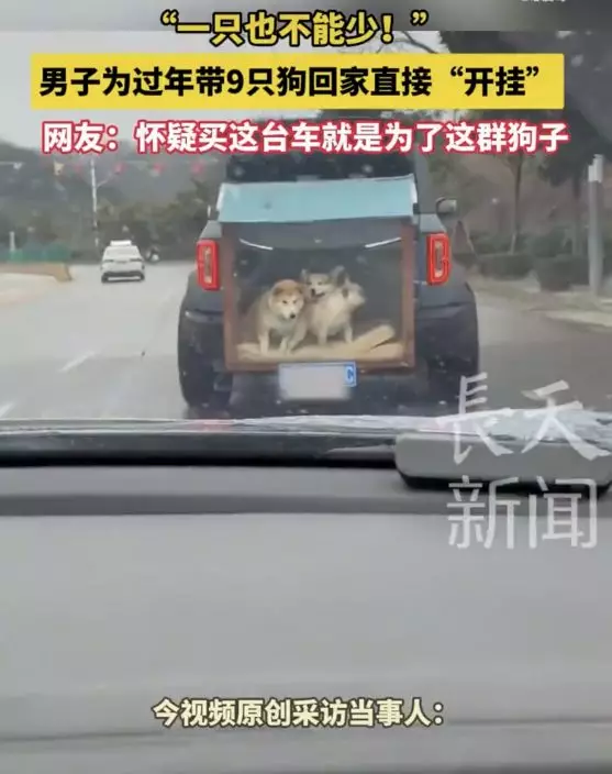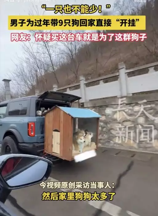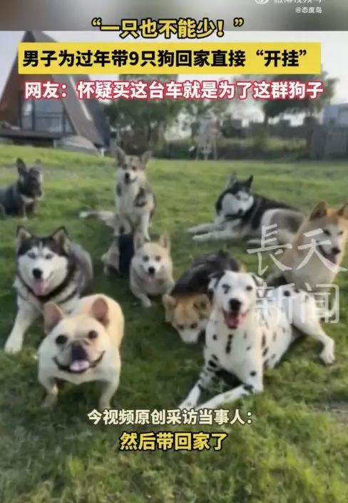綜合內媒報導,內地一名飼主周先生近期自行駕車返鄉,並計劃將家中的9隻狗狗一同帶回家過年,其中包括哈士奇、柴犬、大麥町等大型犬,以及法鬥、柯基等中型犬。