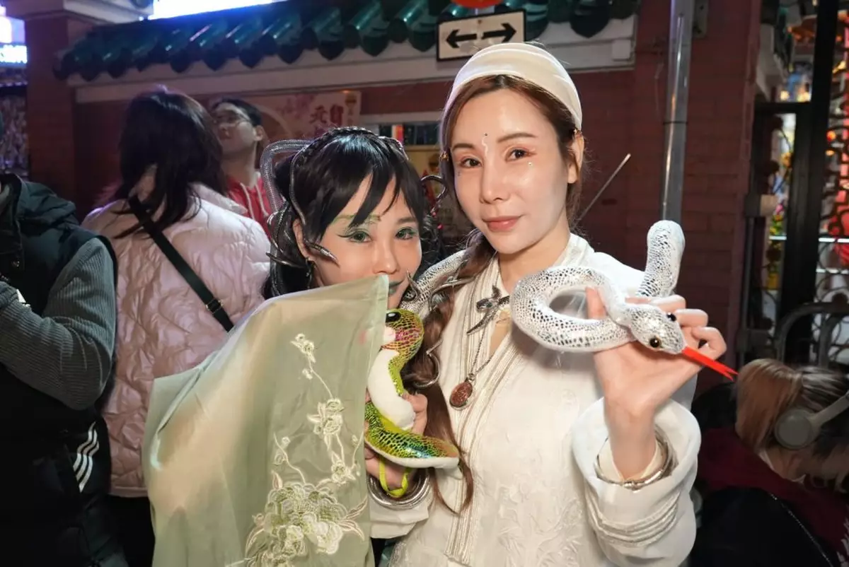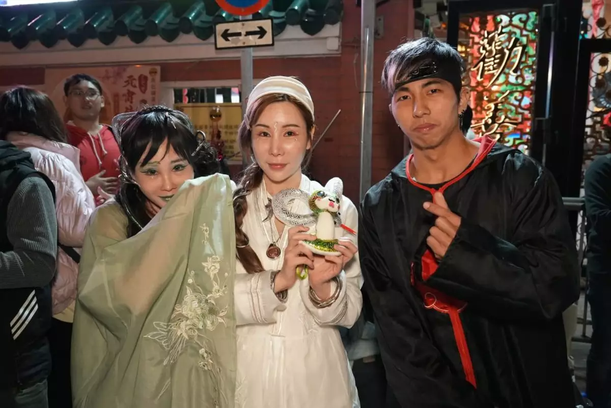 夏蕙姨契女艾美琦及李子彤下午兩點半左右已經到場開始排隊,一旁的火影忍者的造型衫登場,而艾美琦則表示,因為長輩要求一定要符合當年的生肖,最後與李子彤選了白蛇和青蛇的造型,二人希望能趕走霉運,大家都身體健健康康,開開心心。