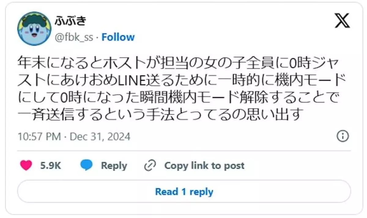 帳號名為ふぶき的日本網友在X上透露一次傳出多則訊息的訣竅,更稱這是許多男公關常用的招式。