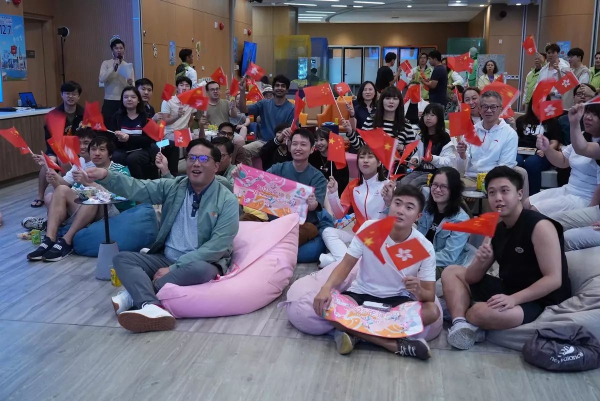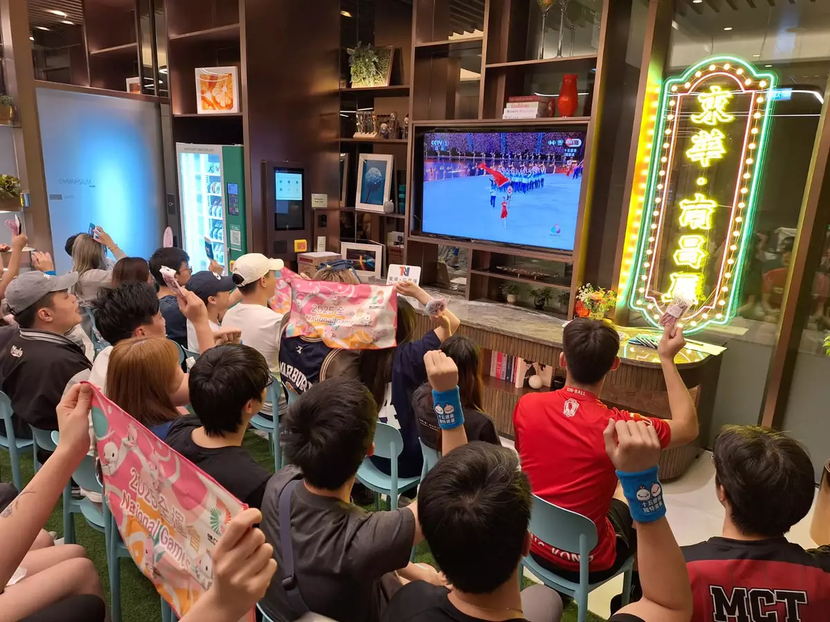 全運會現場氣氛熱烈。除了早前青年街站已融入全運會元素外,民政及青年事務局亦與多間青年宿舍合作舉辦開幕式直播活動,邀請一眾青年宿生共同感受「激情全運會,活力大灣區」的熱烈氛圍。